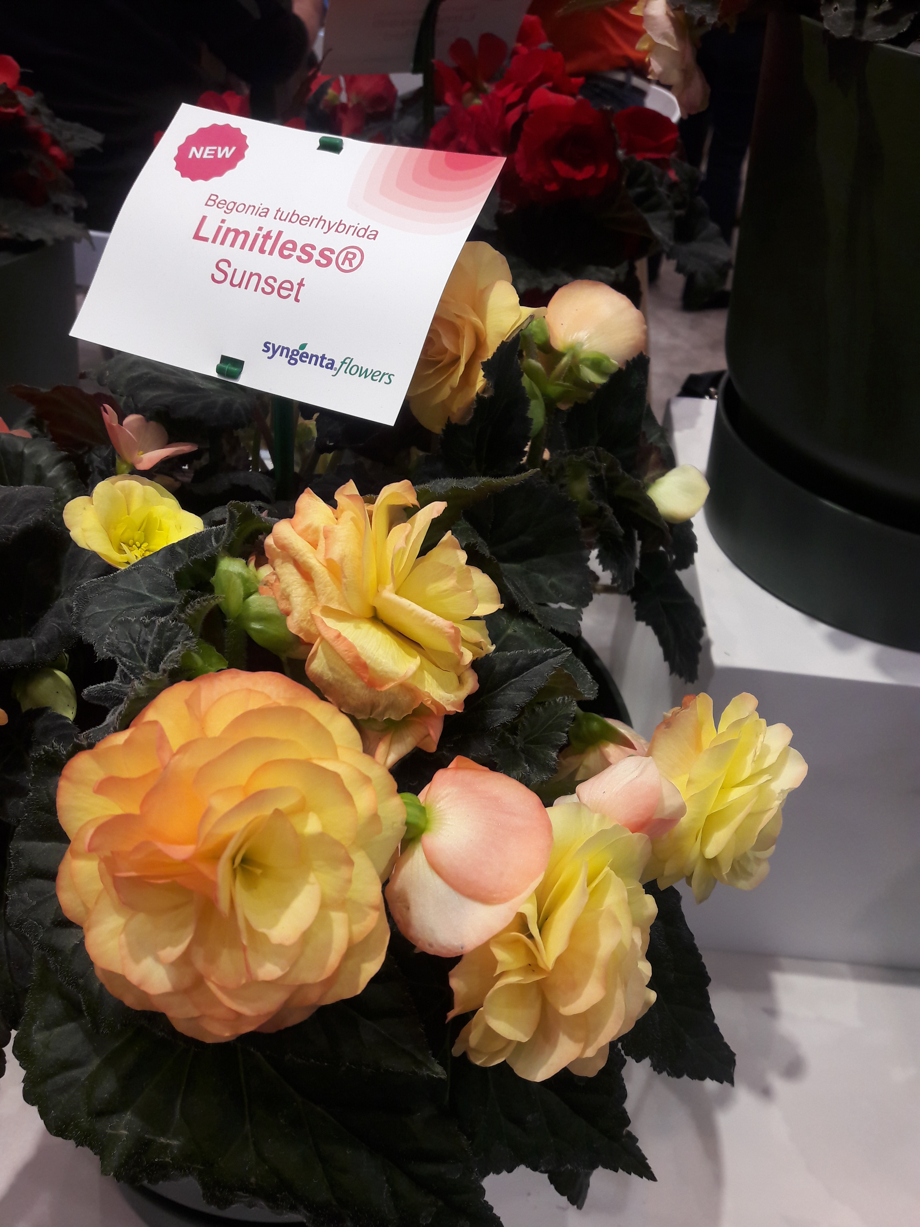 Новая серия бегонии "Limitless" с очень большими махровыми и полумахровыми цветами. Зацветает на неделю раньше прочих сортов. Почти не требует применения PGR. Горшок - 10-14 см.