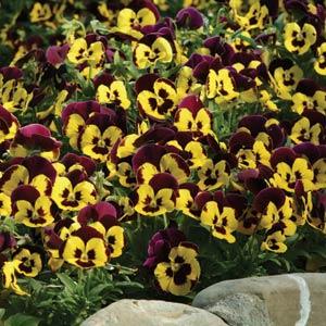 Виола со средним размером цветка. Из-за того, что ее лепестки меньше и толще, серия "Panola Standart" лучше выдерживает неблагоприятные погодные условия, сильный дождь и ветер.