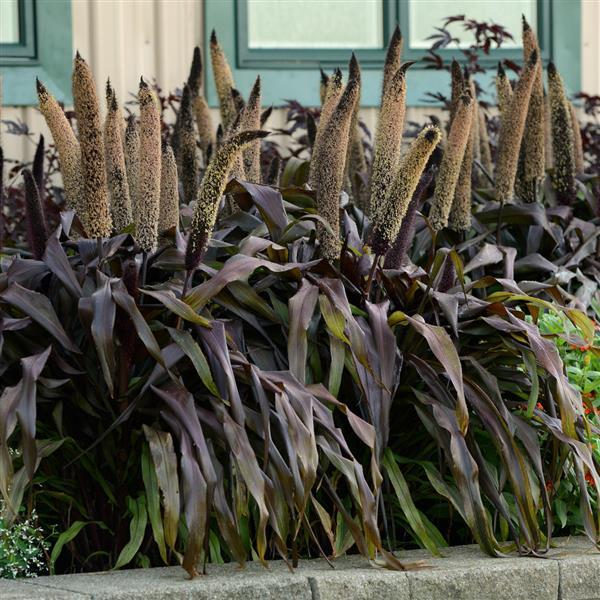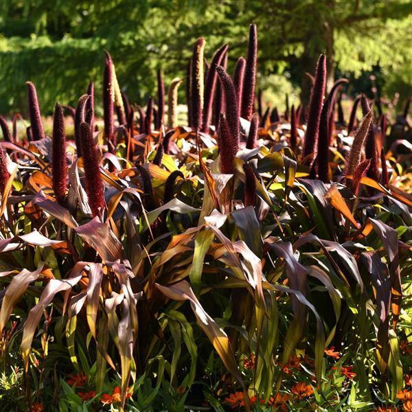 Молодая листва светло-карамельного цвета, постепенно становится более насыщенного медного оттенка. Розово-бронзовые метелки украшают растение поздним летом.