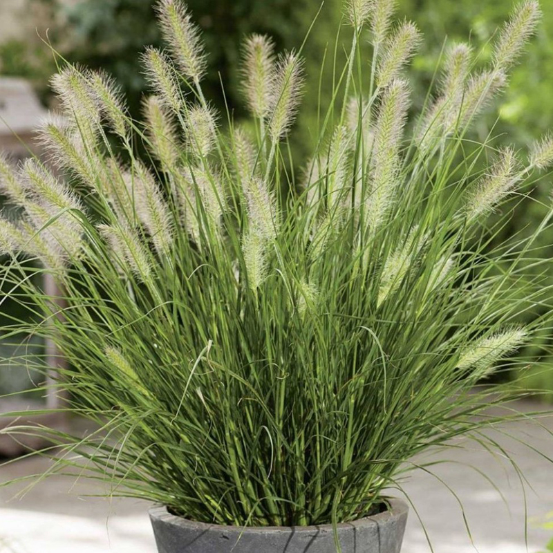 Декоративный злак. Летник. Зеленовато-белые колоски, зеленая листва. Отлично подходит для групповых посадок.